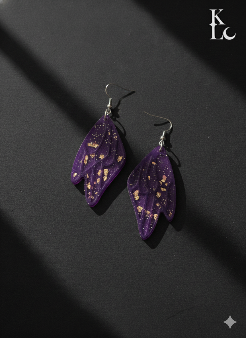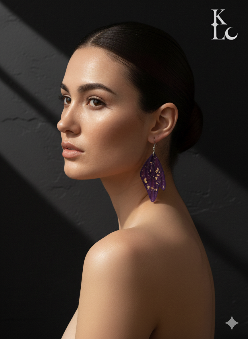 Despliega tu magia interior con los Pendientes "Alhada Kábala". Estas etéreas alas en resina púrpura, delicadamente salpicadas con hojas de oro brillante, te invitan a un vuelo de fantasía y transformación. Pertenecientes a nuestra colección Kábala, simbolizan la ligereza, la inspiración y la conexión con lo místico. Ligeros y llenos de encanto, son perfectos para añadir un toque de ensueño y elegancia a cualquier atuendo. Deja que estas alas te eleven y te envuelvan en su brillo encantador.