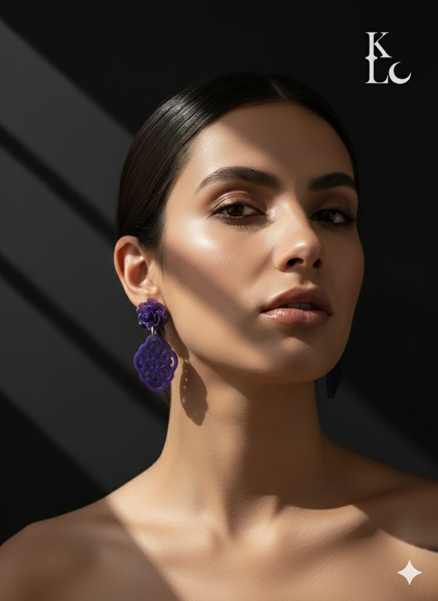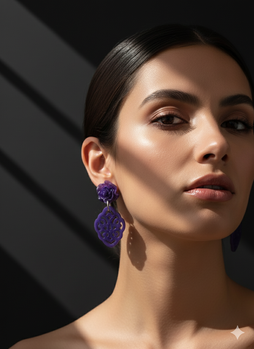 Descubre la elegancia y el diseño artesanal en nuestros pendientes Carmen. Elaborados cuidadosamente en resina, estos llamativos accesorios en tonos morados profundos son la pieza perfecta para quienes buscan un estilo distintivo y lleno de personalidad. Ligeros y únicos, los pendientes Carmen son un reflejo de sofisticación que iluminará tu look con un encanto inigualable. ¡Atrévete a lucirlos!"