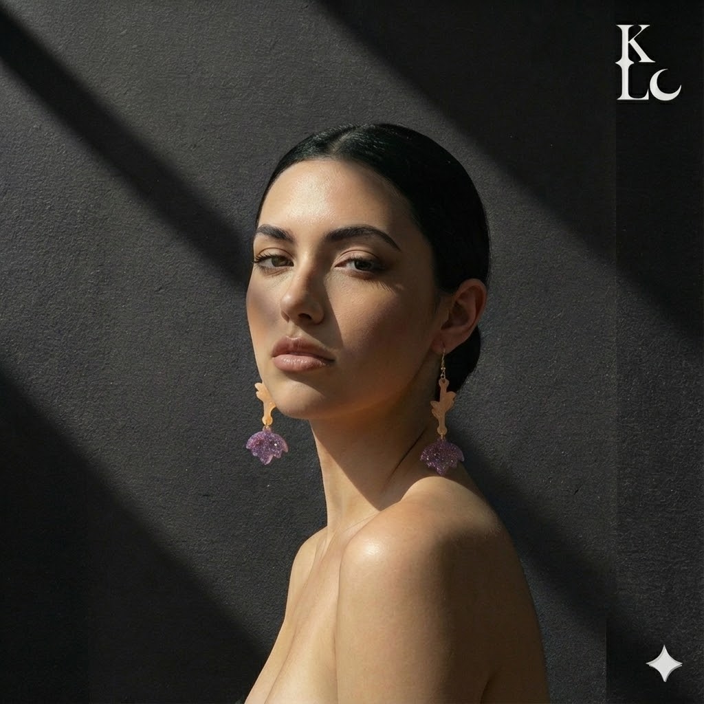 Juego de Colores: Combina un suave tono nude superior con un cuerpo en lila glitter, evocando los colores del crepúsculo.